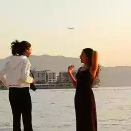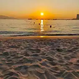 Watching the planes take off and land one by one at the airport illuminated by the orange clouds