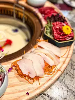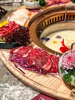 The hot pot restaurant environment is gorgeous and elegant, and very spacious, the overall feeling is comfortable, very suitable for photography and gathering 😌 After seating, the head will be served pear jasmine tea, sweet and nourishing 😌