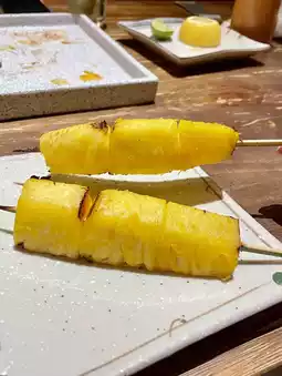 There are also several desserts here, grilled pineapple is sweet and sour, seasonal ice cream is matcha, caramel sweet potato with ice cream cold and hot combination is good, year cake soft and full of melted cheese
