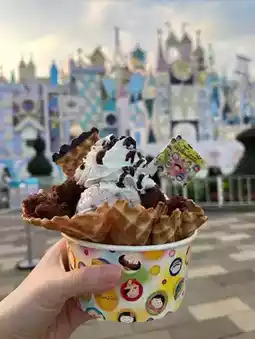 In terms of park prices, this is an affordable choice 🤑 There are two balls of ice cream, and outside to eat gelato itself is not cheap, but I think it is more like ice cream, milk flavor is heavier 🍼 Waffles are constantly freshly made, out crispy 🧇 chocolate cake is cake crumbs, eat quite awkward, can not do ritual 👸🏼