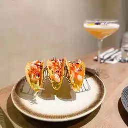 There are 3 tacos in one serving🌮 Cocktail shrimps are the main filling. The raw shrimps are fresh and tender🍤 Served with vegetables, salmon roe and salad sauce🥗 The tacos are crispy. The overall combination is good. A very surprising side dish♪(´ε` )