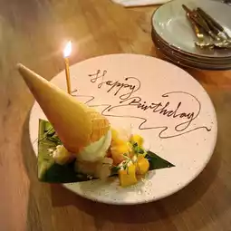 A dessert that makes people full of surprises, both the appearance and taste are very attractive, the restaurant for the editor prepared birthday candles and painting plate wishes this! Happy. Coconut ice cream cone, sweet mango with soft coconut glutinous rice, slightly sweet, good looking and delicious, warm and delicious dessert, great for photography.