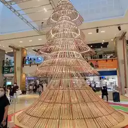 Tseung Kwan O Plaza has created a different Christmas tree in the mall with the concept of protecting the environment. From a distance, you can see a different Christmas tree, this Christmas machine is not green and not surrounded by a bunch of decorations. When I got closer, I saw that it was a Christmas tree made of bamboo. To its credit, these bamboos are recycled from the site. It makes sense to be able to respond to environmental protection at the same time as the festival.