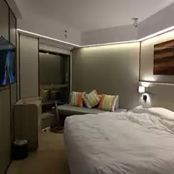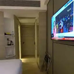 The room is equipped with everything you need, including free bottled water, electric kettle and teacup tea bag and coffee bag set, a wardrobe, mini fridge, safe safe, wall-mounted large TV and eco-friendly slippers. The room has enough switch sockets, and there are near the head of the bed, more USB charging plug and total light switch, very user-friendly and convenient design, worth adding points!
