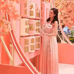 Slowly step onto the pink arch bridge and take in the tender sea of cherry blossoms and the cute jade rabbits. I wish you all further success in the new year.