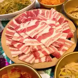 In addition to general Korean food, they can also eat the popular retro-style pork belly frozen pork belly (냉동삼겹살), which is very famous in Korea recently.