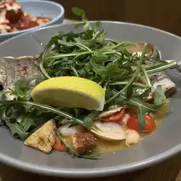 Pan-roasted sea bass fillet and stewed prime seafood is very filling. In addition to a large piece of slippery sea bass, there are also 3 refreshing prawns and several clams. The soup base has a strong seafood flavor and is very fresh and sweet.