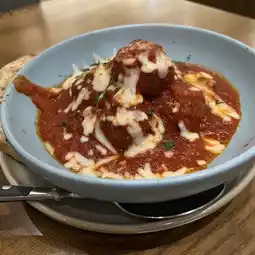 Meatball Parmegiana is sandwiched with evil cheese. The vanilla-flavored tomato sauce🥫 is strong. After eating the meatballs, I dipped some of it with the sourdough bun, and there was still a little left. I couldn't help but put it into my mouth with a spoon🥄.
