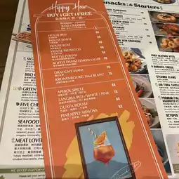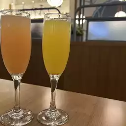 We got off work on time and were able to enjoy the Happy Hour buy-one-get-one-free drink offer. My boyfriend and I each ordered a cocktail. Guava Royale is made with pomegranate juice, grapefruit juice, and sparkling wine, and it tastes refreshing. Pineapple Mimosa is made with pineapple🍍 juice, mango puree, and sparkling wine. It has a strong mango flavor, and you can also taste a small amount of fruit pulp.
