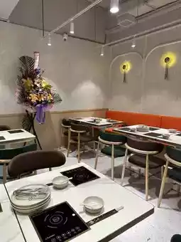 Because it is too new, it was not full during the trial period, so there are seats for a group of 7 people here. The restaurant is designed to take a hipster route, mainly white and orange, unlike the dim lighting of the usual hot pot restaurant, here is bright and clean, with booths, spacious seats, very young and lively.