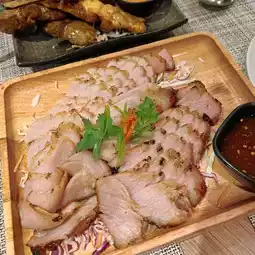 The portion is super large. A big plate, the pork neck is grilled and crispy, the meat is very soft and smooth, and the secret sour and spicy sauce is served, very appetizing❗️