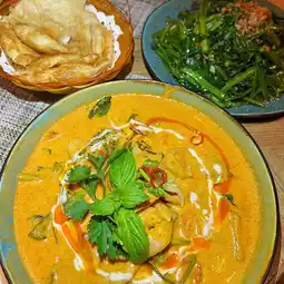 The shrimp meat is fresh and tender, the red curry is rich but not spicy, the curry sauce is plentiful, dipped in pizza and eaten together, very tasty!