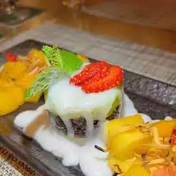 The three-layer combination of white glutinous rice, purple glutinous rice and plantain glutinous rice, the slightly warm glutinous rice is smoky and tough, with rich and rich coconut milk😋 It's delicious! The mango flesh is fresh and juicy