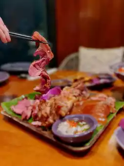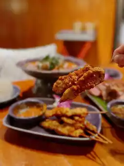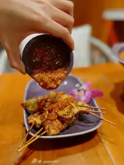 A serving of 6 skewers looks like stand-up sprinkled with satay sauce to make the meat more fragrant. The roasted pork is more tasty. The ginger sauce is slightly ginger and is very tasty😍