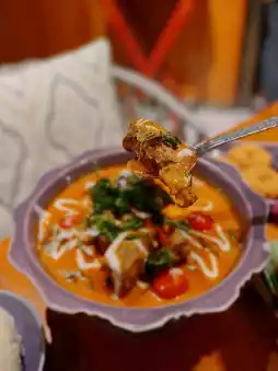 The slightly spicy red curry is super fragrant. The beef ribs are cooked until very soft and quite seasoned. It spreads almost as soon as it is folded. The aroma of the nine-story pagoda adds a sense of layering