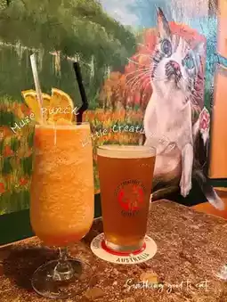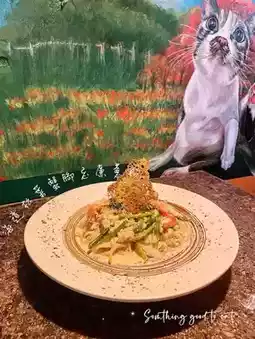 Passing by this bar and restaurant ❥⧽Muze Mozz❥⧽, it feels very warm, so go in to Chill and eat. Lots of bar tables in the restaurant, with a meow mural on one side of the wall, which is amazing.
