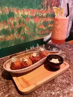 The potato balls are delicious! They are freshly fried so the outside is crispy and the mashed potatoes inside are soft!
