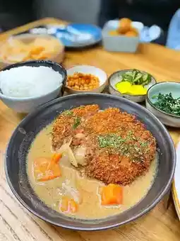 ▫️ The crust is fried crispy, the vegetarian pork chop is more powdery texture 🫢 The white curry sauce tastes very fragrant, great with rice, but it is thinner and smaller portion🧐