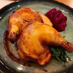 Drunken Southern Milk Grilled Spring Chicken with Kale and Beet Pickles, Kimberley Sauce $100