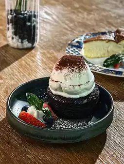 The surface of the cake is soft, cut open to have a melting effect, rich chocolate flavor but not too sweet, and vanilla ice cream is a perfect match😌
