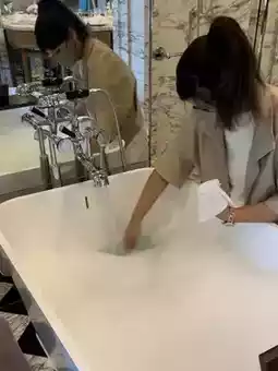 The bathtub is big and beautiful, the black and white lattice floor is great for taking pictures as a background. I'm satisfied with every selfie with the ball light makeup mirror 🫶🫶 (Picture 5)