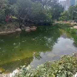Hong Kong Park covers a large area. There is a huge fish pond where many carp and turtles swim.