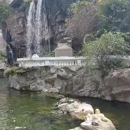 There is a large waterfall where you can take pictures. There are many small waterfalls nearby, which are beautifully decorated and have many people taking pictures.