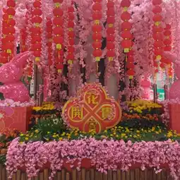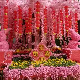 There are bunny decorations in the Lunar New Year. There are many congratulatory words to take pictures with others.