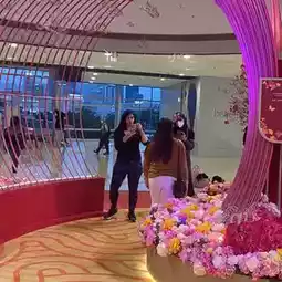 There are festive New Year flower decorations in different corners of the mall. You can go for a good luck 🌸!