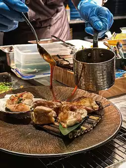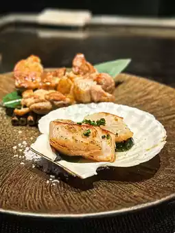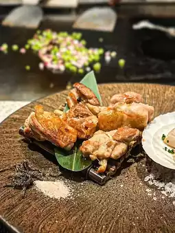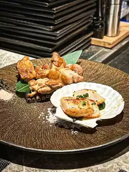 Japanese sashimi is fried in butter until half-cooked, the entrance freshness with butter flavor, grapefruit juice takes the freshness to another level; the chicken steak is thick and juicy, the chicken skin is fried crispy, with homemade sauce is delicious😌