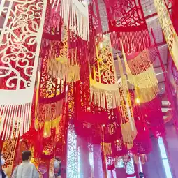 Features – Red hanging paper-cuts represent all the blessings of the Chinese New Year!