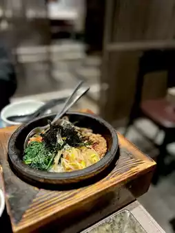 Stone grilled chicken kimchi pot rice, sea bath soup, dessert Another order of black hair wagyu beef grilled 🥩