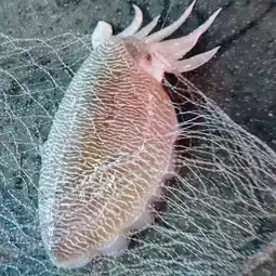 The giant cuttlefish, nearly a foot long, sparkled when it first came ashore!