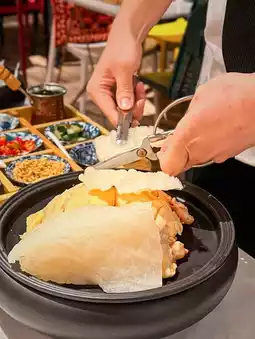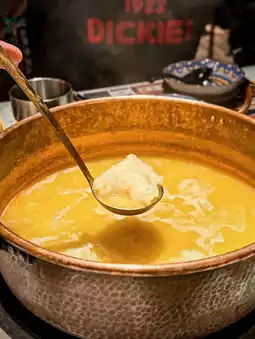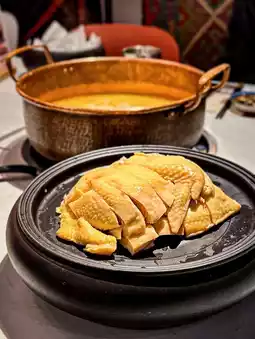 The shopkeeper impromptu cut the large pieces of flower stalks, put them in the soup made with a large amount of three-yellow chicken, boiled and then put the fresh chicken pieces to cook for 4 minutes; the soup tastes rich and fragrant, every bite is full of collagen, the chicken pieces are tender, not hot pot can not help but drink a few bowls, super good 😋