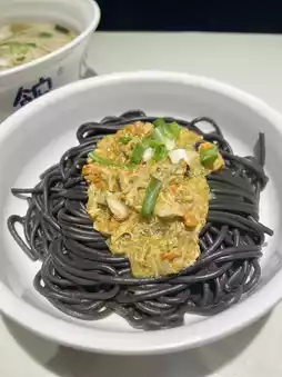 The portion is not small, hand-cut noodles in squid sauce, covered with crab powder, every bite is full of rich crab oil aroma, full of freshness!