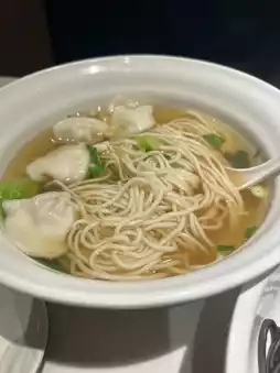 The Chinese celery is served with fresh meat dumplings🥟, the taste goes well together, and it's cooked just right, not too soft, and the noodles are very bouncy