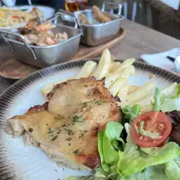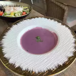 Set lunch includes house salad🥗/soup of today, and my sister ordered one each. The salad was rich with 3 refreshing shrimps and mango pieces. This daily soup is purple sweet potato cream, smooth and creamy!