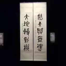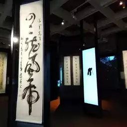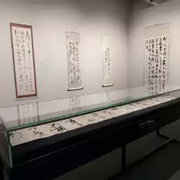 The exhibits include calligraphy works of different scripts.