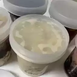 The whole bowl is filled with peach jelly. The portion is super plentiful