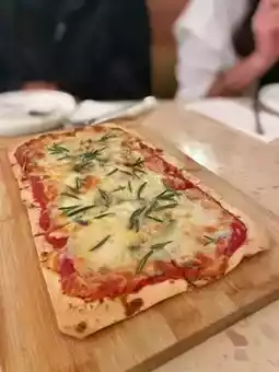▫️ Made of blue cheese, buffalo cheese, Parmesan cheese, the cheese flavor is very rich 🪤 pizza is my favorite thin crispy bottom, pull open and have a thread effect 😍