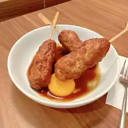 A popular dish, each order comes with three skewers of chicken sticks, served with a Japanese sauce and a raw egg yolk. The outer layer is crispy, while the inner layer is filled with cartilage, giving the chicken a soft, crunchy texture. The sauce is salty and sweet, and the egg yolk adds a smooth texture. 🌟 Recommended!