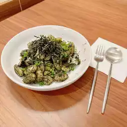 This is a new dish at the restaurant. The potato balls are potato dumplings made with flour. Each round ball has a chewy texture. Adding octopus slices and nori makes it feel like octopus balls, but without the teriyaki flavor, the seaweed fragrance is replaced with a refreshing aroma.
