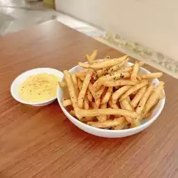 The thin fries are fried to a golden and crispy texture, with a subtle truffle aroma. Dipping them in the creamy mayonnaise makes them even more delicious.