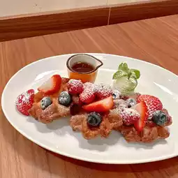 I initially thought there was a typo on the menu. Fried waffles? Aren't waffles baked? Turns out these waffles are actually fried, with a crispy texture. The strawberries and blueberries paired with maple syrup and fresh cream are sweet and delicious.