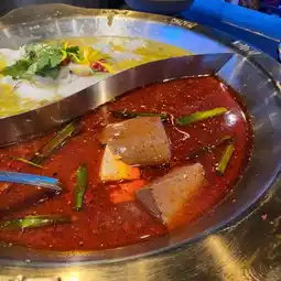 Also ordered the spicy duck blood soup pot, half pot already has many pieces of duck blood, with spicy really perfect match, then take the above soup hot pot order ingredients, seriously and taste!