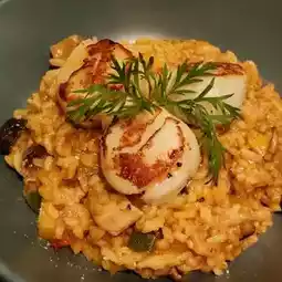 This main course was also excellent. The rice had a great texture, and the scallops were fresh and sweet 🥰. The rich lobster sauce made it even more delicious 😋.