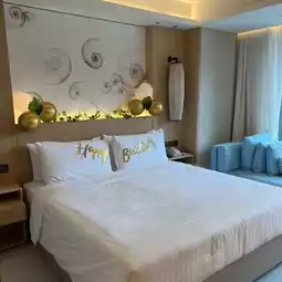 The room is facing the entrance of Ocean Park🐬. My son is so excited that he is jumping on the sofa