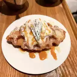 Very crispy croissant waffle with milk sauce like eating a very crispy checkered cake
