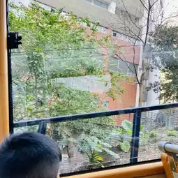 While sitting and enjoying the scenery outside the window, the tall buildings, dense jungles look really like they are distorted, it's wonderful!