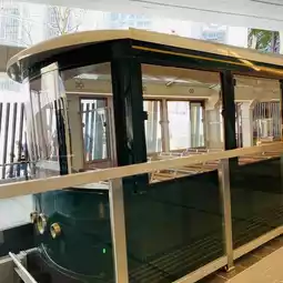 The new cable car is big and new, and is more spacious than before, accommodating 120 people; the window is larger, and looking up, you can see the sky through the glass window on the roof, which is very open.